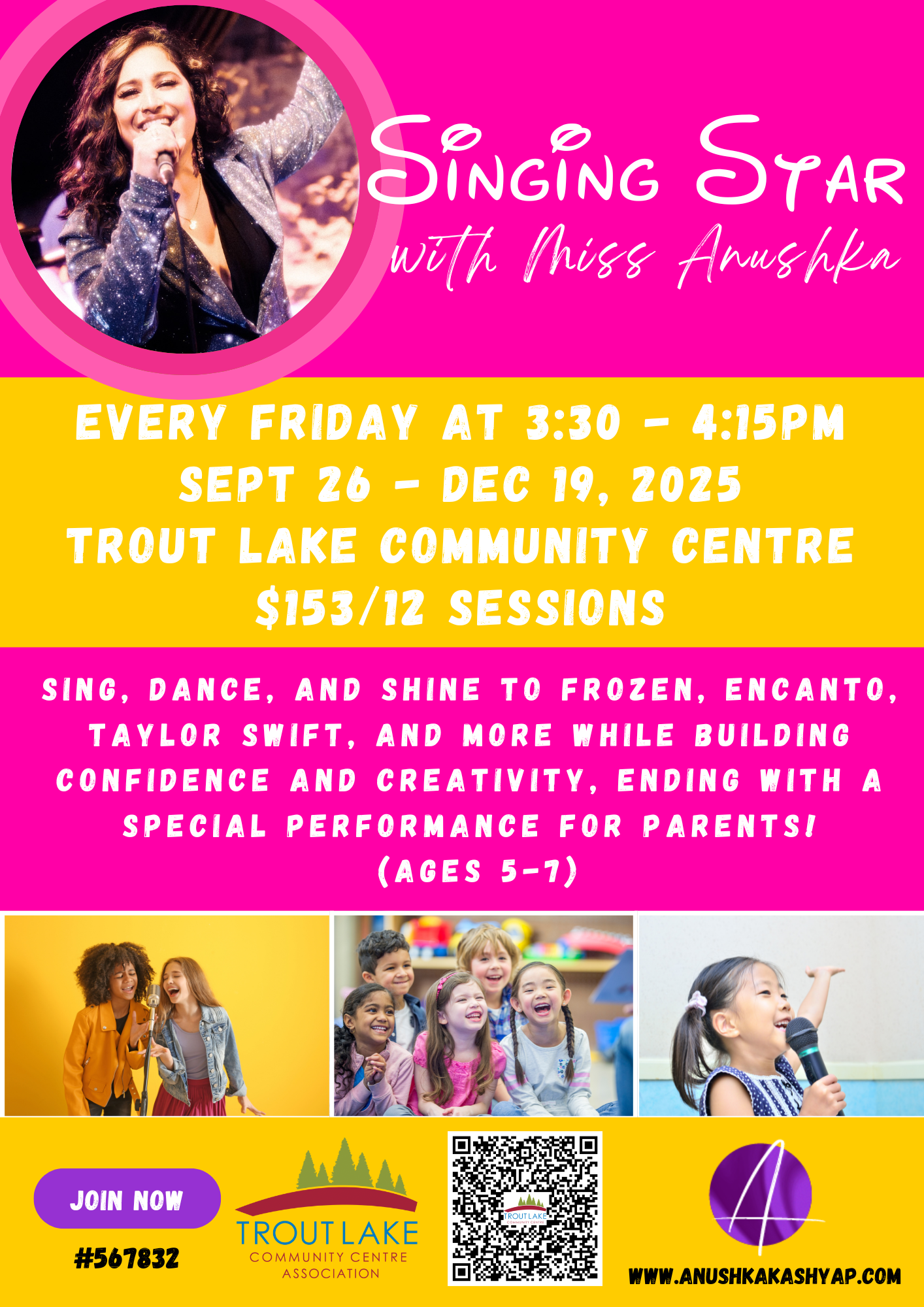 Sing, dance, and shine to a fun mix of Disney favorites and kid-friendly pop hits! Each week features songs from movies like Frozen, Encanto, Sing, and Descendants, plus upbeat tracks from artists like Taylor Swift, Olivia Rodrigo, and Meghan Trainor. With games, choreography, and sing-alongs, kids build confidence, creativity, and teamwork—ending with a special performance for parents to celebrate their progress! No class Oct 31.